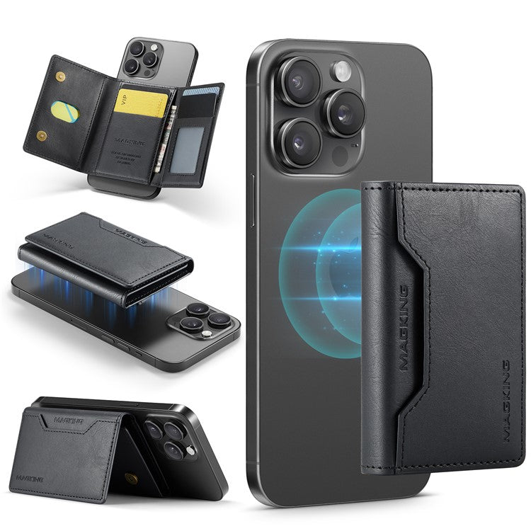 MAGKING K2 Kickstand Magnetic Card Holder Compatible with MagSafe RFID Blocking Cell Phone Wallet - Black