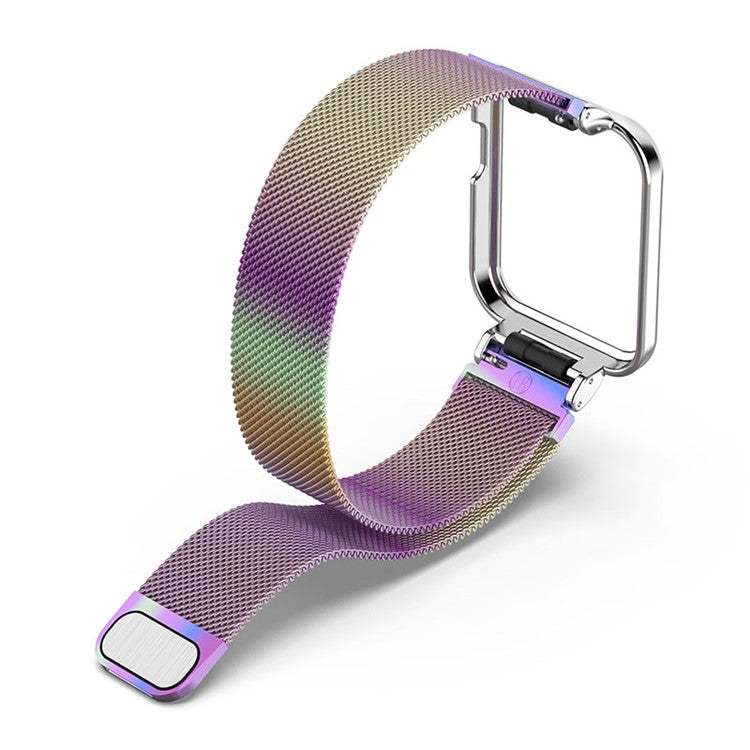 Magnetic Closure Freely-Adjusted Stainless Steel Watchband Wrist Strap + Watch Protector Case for Xiaomi Redmi Watch 2 - Colorful/Silver Frame