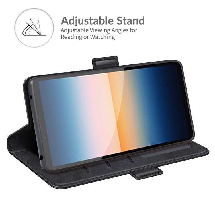Magnetic Double Clasp PU Leather Wallet Stand Case Shell for Sony Xperia 10 III 5G / Xperia 10 III Lite - Black
