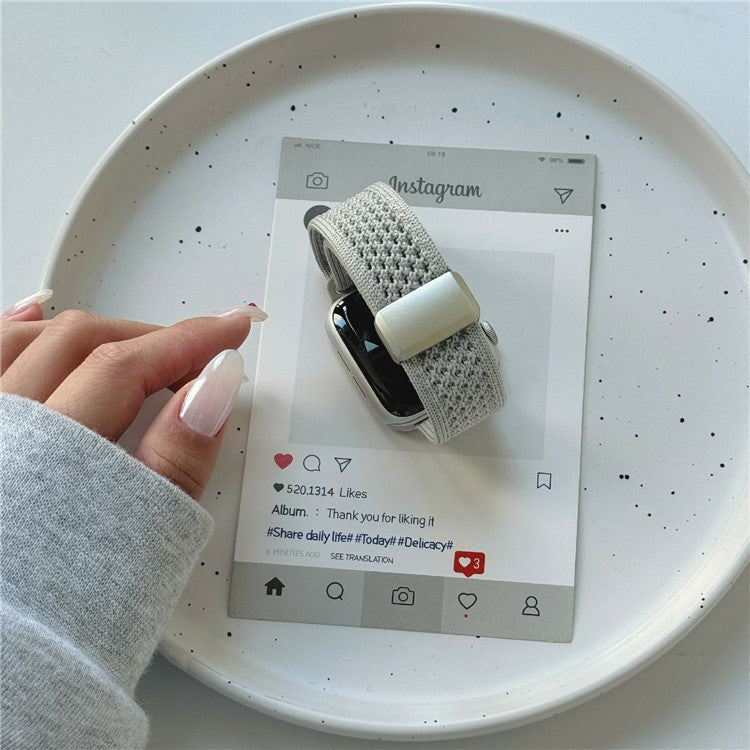 Magnetic Strap for Apple Watch Series 10 9 8 7 SE 6 5 4 3 2 1 42mm 41mm 40mm 38mm Nylon Watch Band - White / Starlight