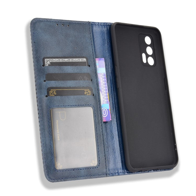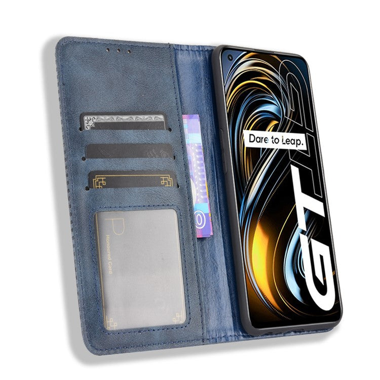 Magnetic Vintage Style Phone Case Wallet Stand Leather Cover for Oppo Realme GT 5G - Blue