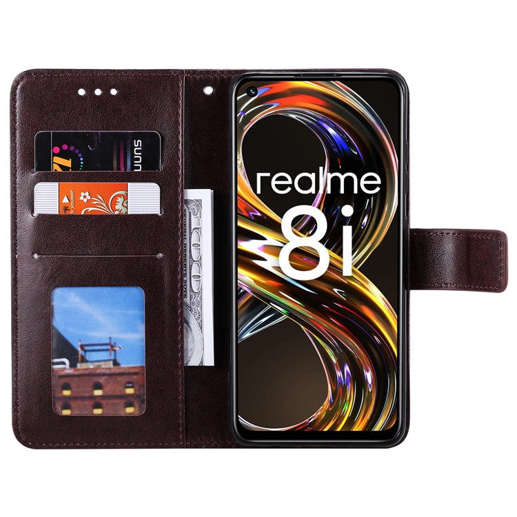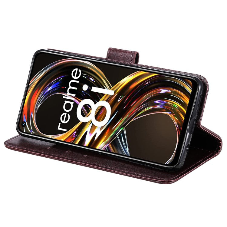 Mandala Flower Imprinted All-round Shockproof Stand Wallet Leather Phone Case Shell for Realme 8i/Narzo 50 4G - Brown