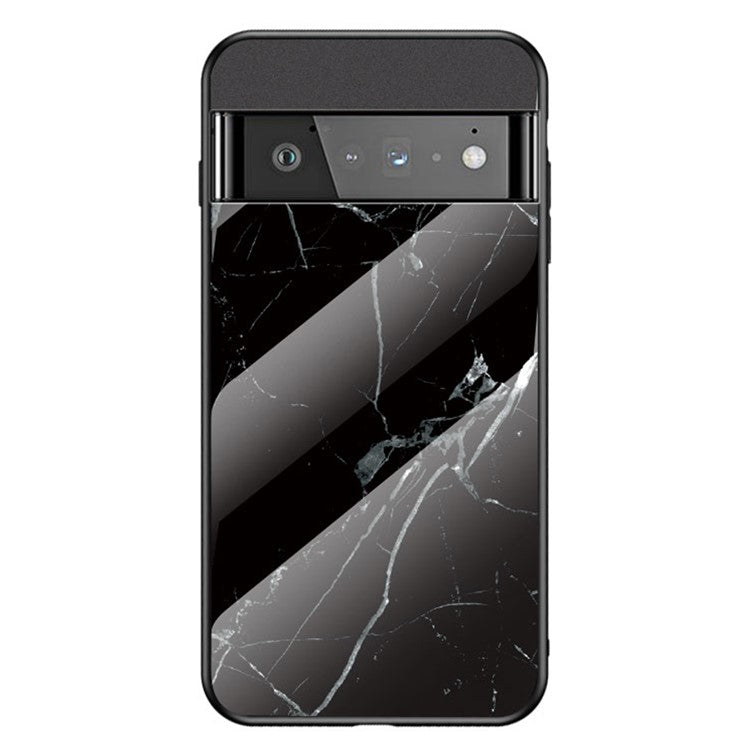 Marbling Pattern Shock-Proof Tempered Glass Cell Phone Cover for Google Pixel 6 Pro - Black Marble