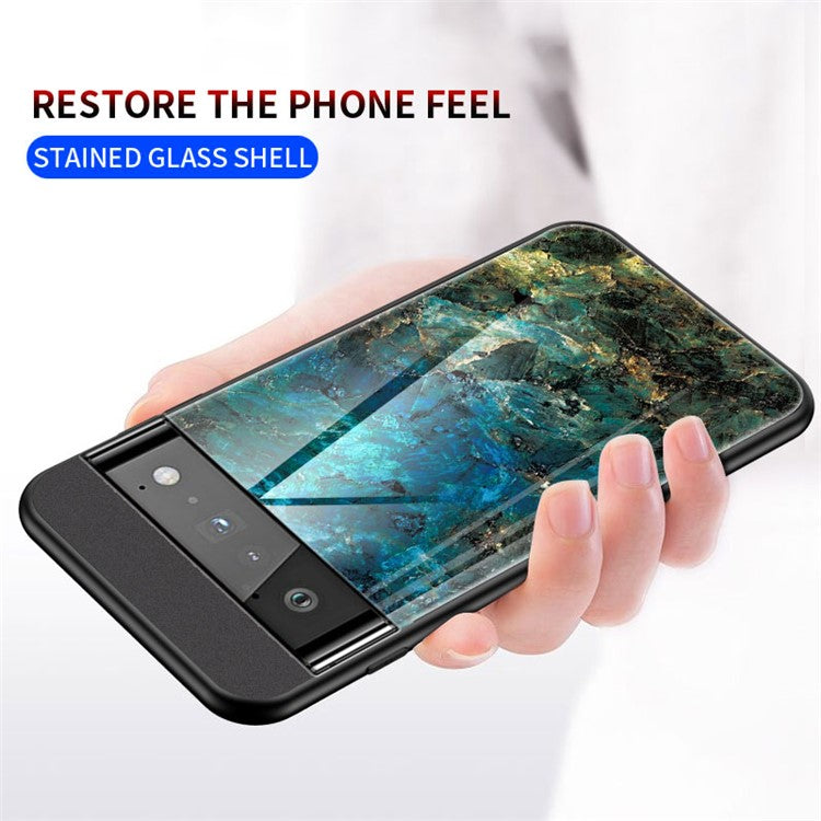 Marbling Pattern Shock-Proof Tempered Glass Cell Phone Cover for Google Pixel 6 Pro - Emerald Marble