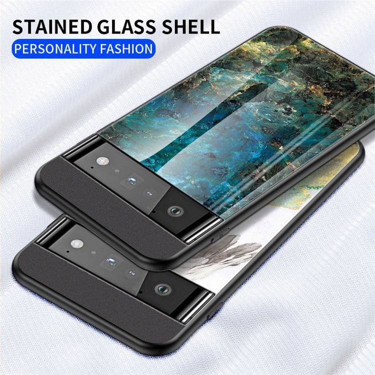 Marbling Pattern Shock-Proof Tempered Glass Cell Phone Cover for Google Pixel 6 Pro - Flying Pigeon Marble
