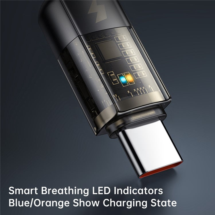 MCDODO CA-2841 for iPhone 15 Series 1.8m Type-C to Type-C PD 100W Fast Charging Auto Power Off Transparent Data Cable, Black
