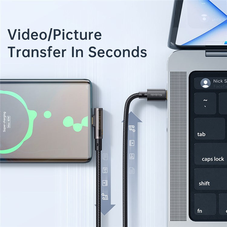 MCDODO CA-3401 for iPhone 15 Series 1.8m Type-C to Type-C 90 Degree L-shaped 100W Fast Charging Transparent Data Cable - Black