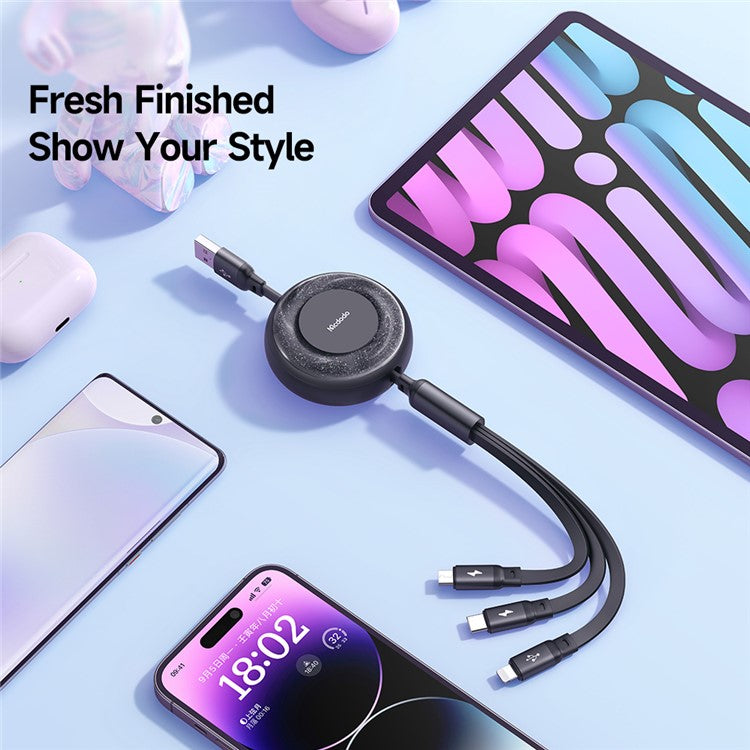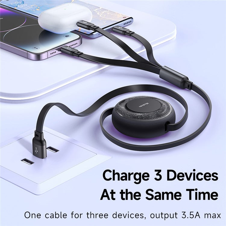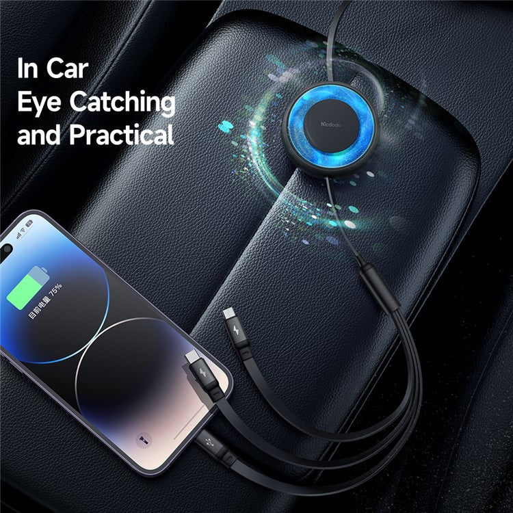 MCDODO CA-357 MDD for iPhone 15 Series 3-in-1 Retractable Charging Cable Lightning Type-C Micro USB for iPhone, Android - Black