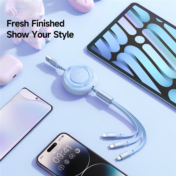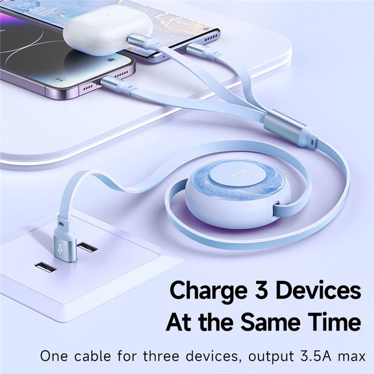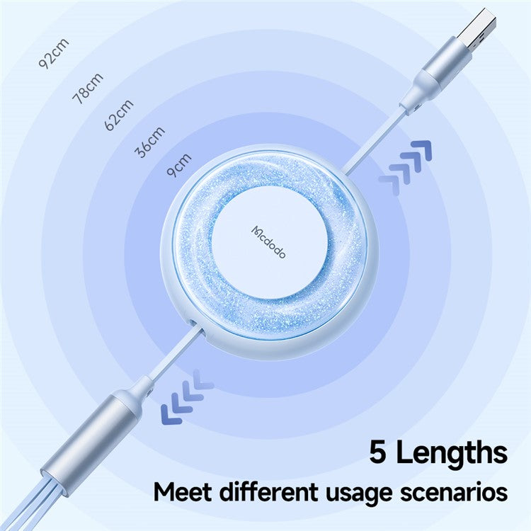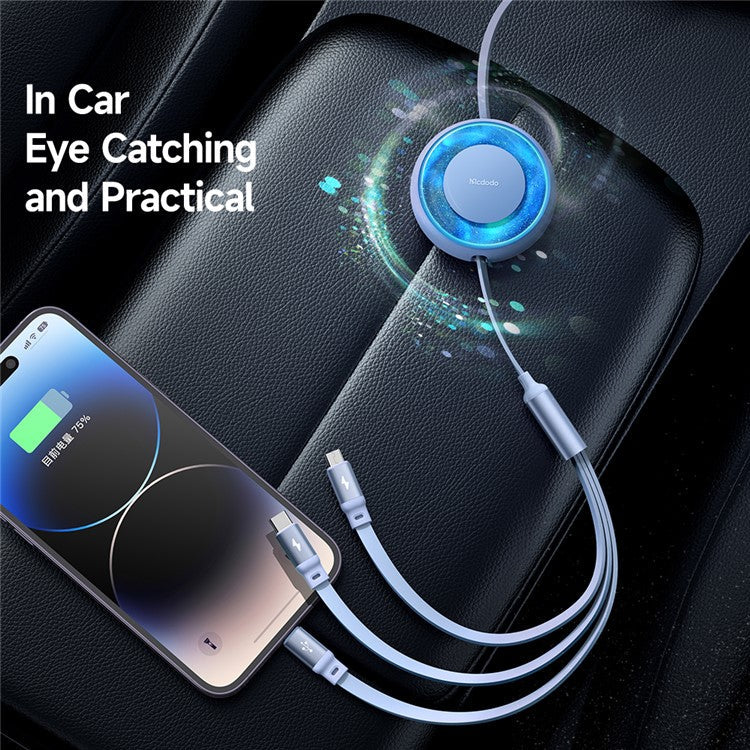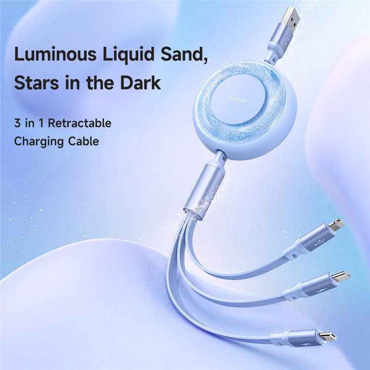 MCDODO CA-357 MDD for iPhone 15 Series 3-in-1 Retractable Charging Cable Lightning Type-C Micro USB for iPhone, Android - Blue