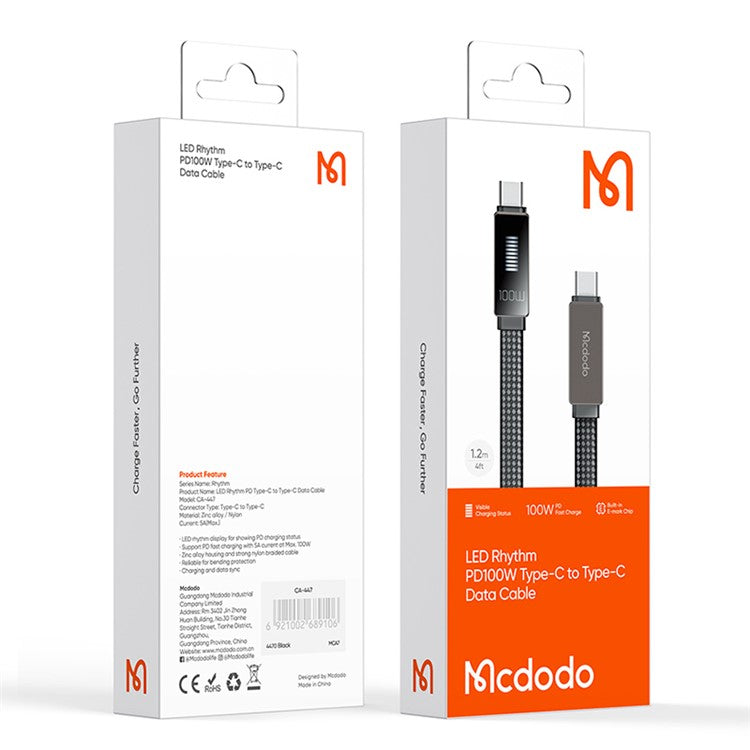 MCDODO CA-4470 Rhythm Series for iPhone 15 Series 1.2m PD 100W Type-C to Type-C Data Cable with 9-level Light Display, Black
