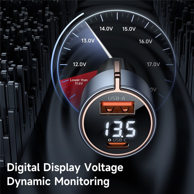 MCDODO CC-3690 USB-A + Type-C Dual Ports PD 75W Fast Car Charger with Digital Display, Black