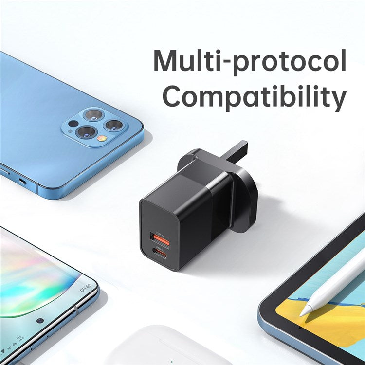 MCDODO CH-130 PD 20W Fast Charging Adapter USB+Type-C Dual Port Wall Charger - Black/UK Plug