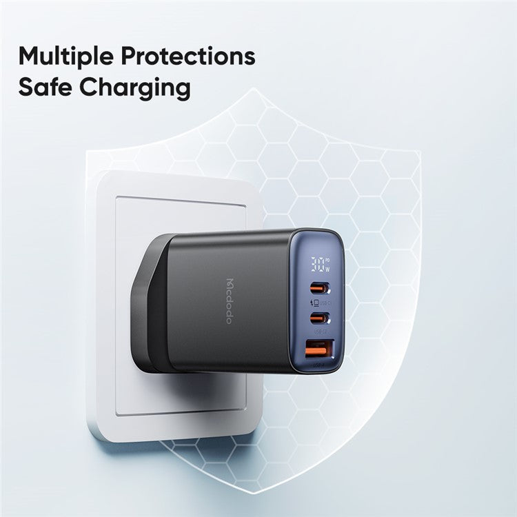 MCDODO CH-2170 30W 3-Port Digital Display Fast Charger (Dual Type-C+USB-A), UK Plug - Black