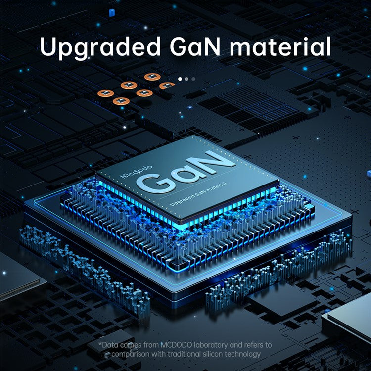 - Upgraded GaN material GaN is a black technology material widely used in the aerospace and military fields. It has the advantages of small size; light weight, low heat generation and high efficiency