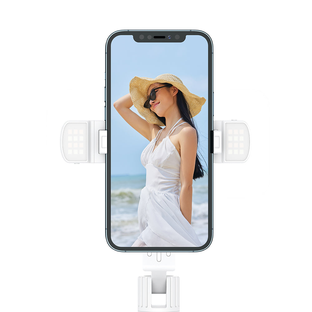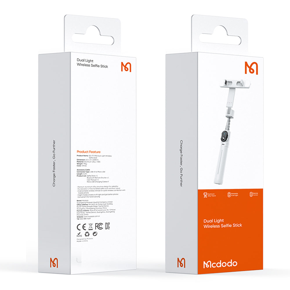 MCDODO MDD SS-1771 Dual Lights Wireless Selfie Stick Portable Tripod Phone Stand with 360-Degree Rotating Phone Clip/Remote for Photography Live Streaming - White