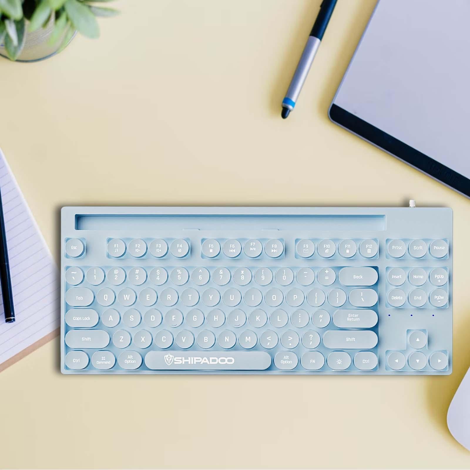 Mechanical Gaming Keyboard Rainbow Backlit for Gamer Office Worker Desktop Blue