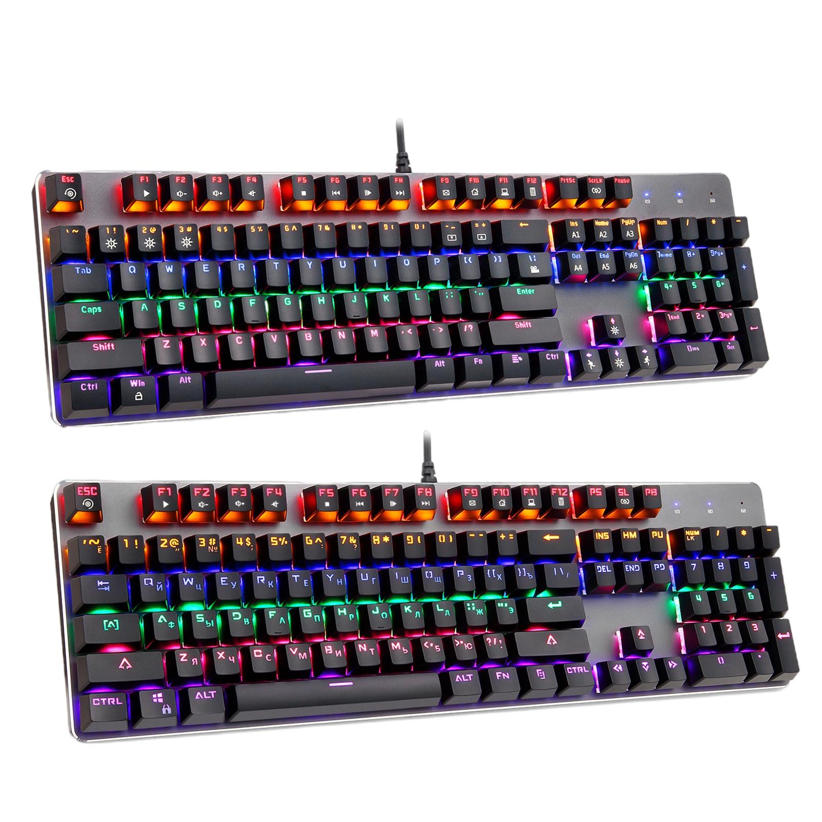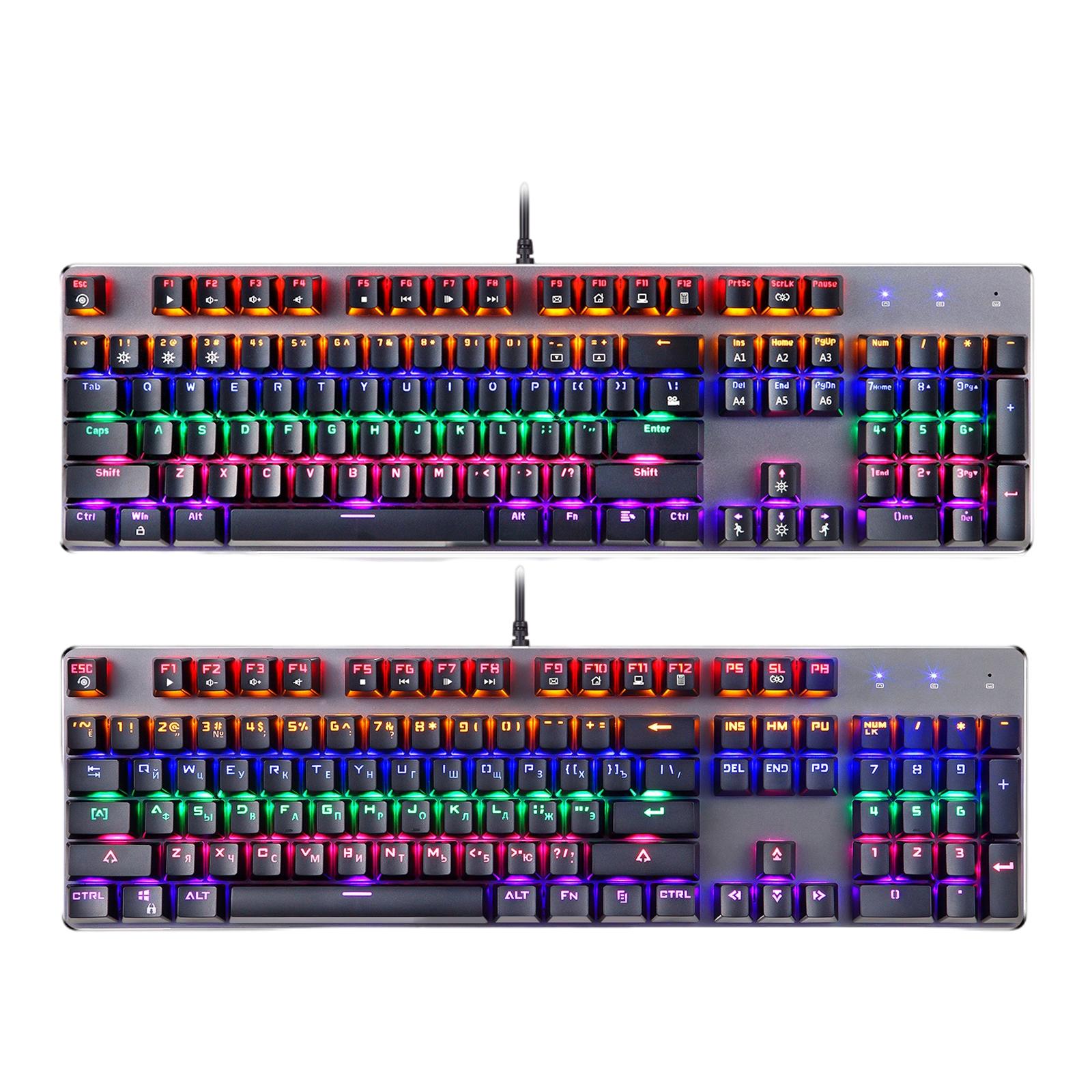 Mechanical Keyboard LED Wired 104 Keys for Office Gaming PC English Russian