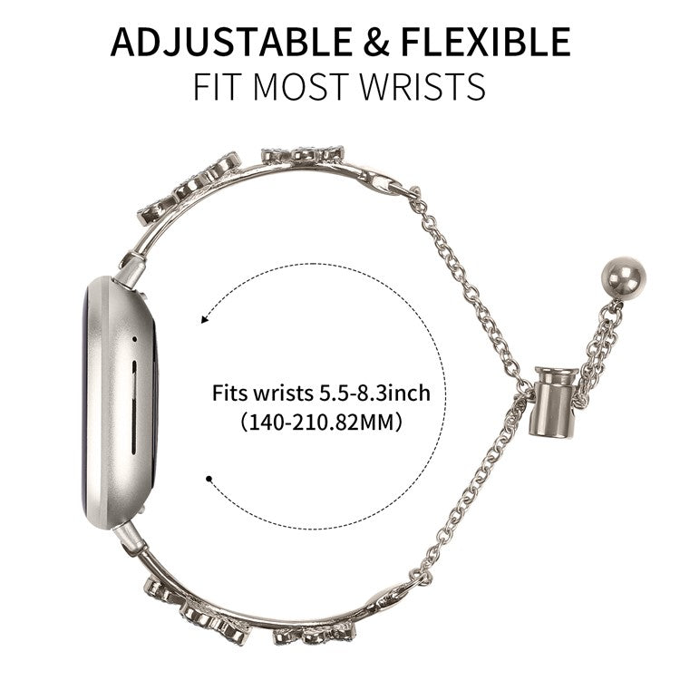 Metal Band Heart Clover Decor For Fitbit Versa 4 / Sense 2 Watch Bracelet Replacement - Starlight