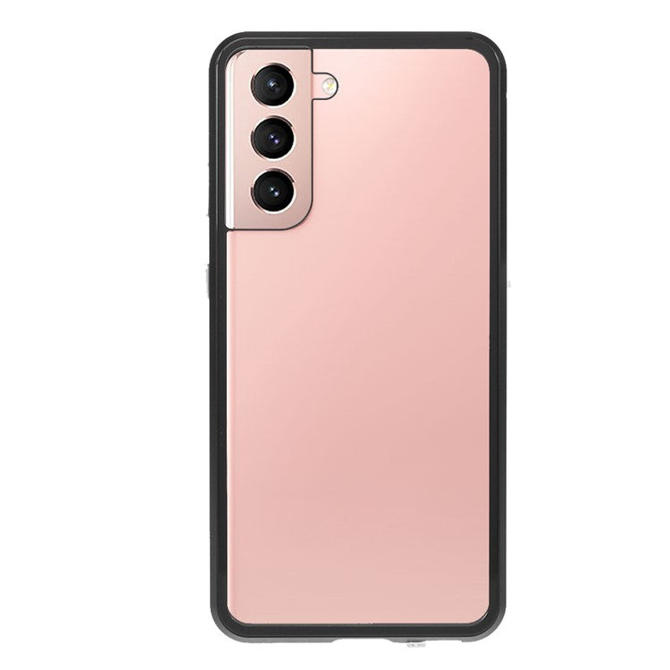 Metal Frame Magnetic + Lock Installation with Double Side Tempered Glass Case (no Fingerprint Function but with Face Recognition Function) for Samsung Galaxy S21 4G/5G 4G/5G - Black