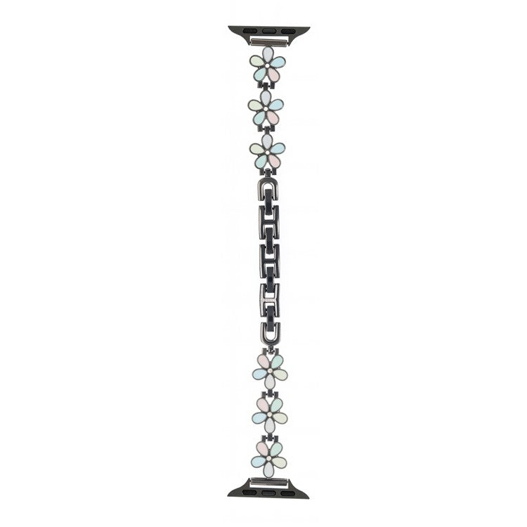 Metal Strap For Apple Watch Series 10 9 8 7 SE 6 5 4 3 2 1 42mm 41mm 40mm 38mm Five Petal Flower Bracelet Watch Band - Light Colorful / Black