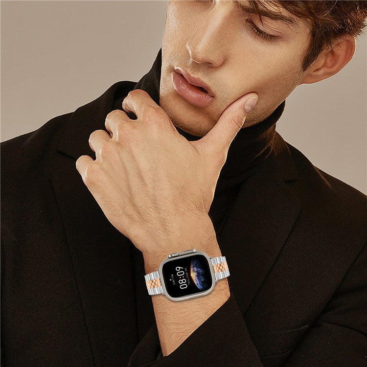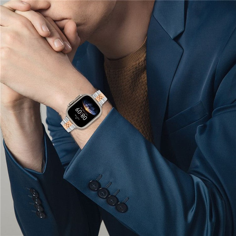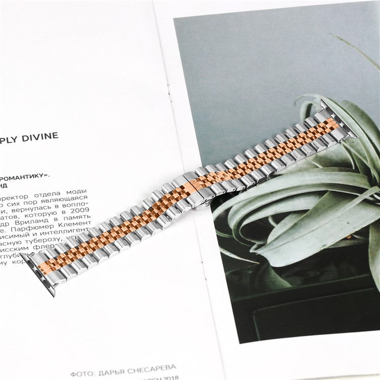 Metal Watch Band for Apple Watch Series 10 9 8 7 SE 6 5 4 3 2 1 42mm 41mm 40mm 38mm Replacement Strap with Butterfly Clasp - Rose Gold / Silver