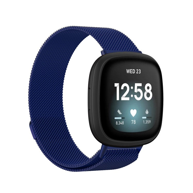 Milanese Stainless Steel Wristband Watch Strap Replacement [Size: L] for Fitbit Versa 3 - Blue