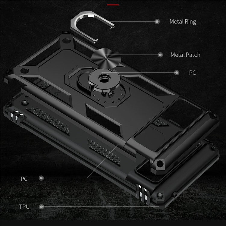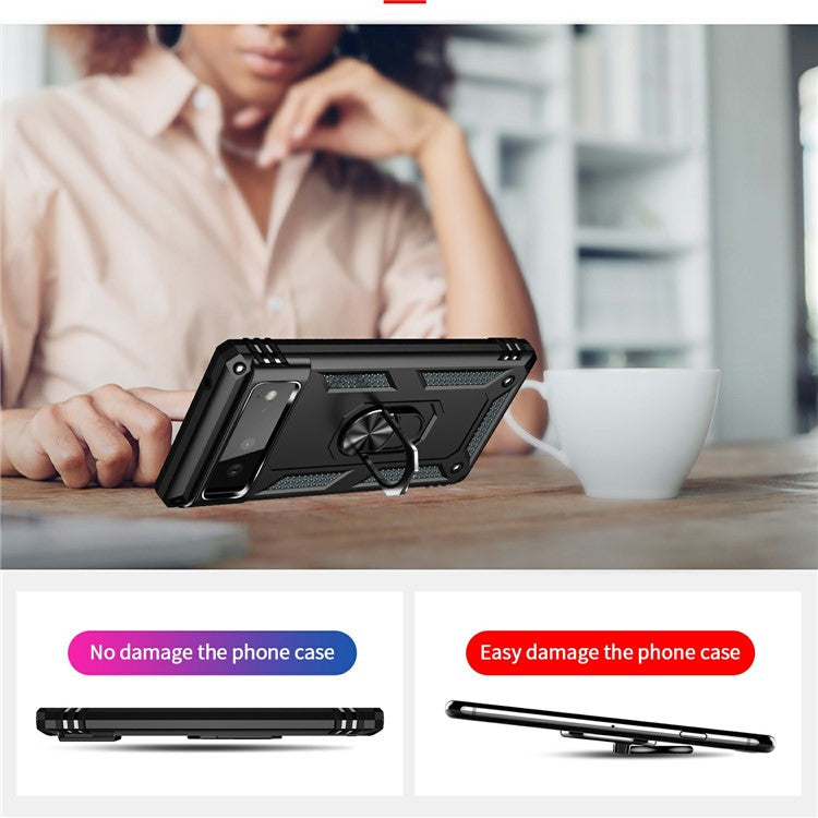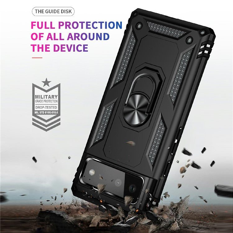 Military Grade PC + TPU Shockproof Hybrid Cover with Rotary Ring Kickstand for Google Pixel 6 - Black