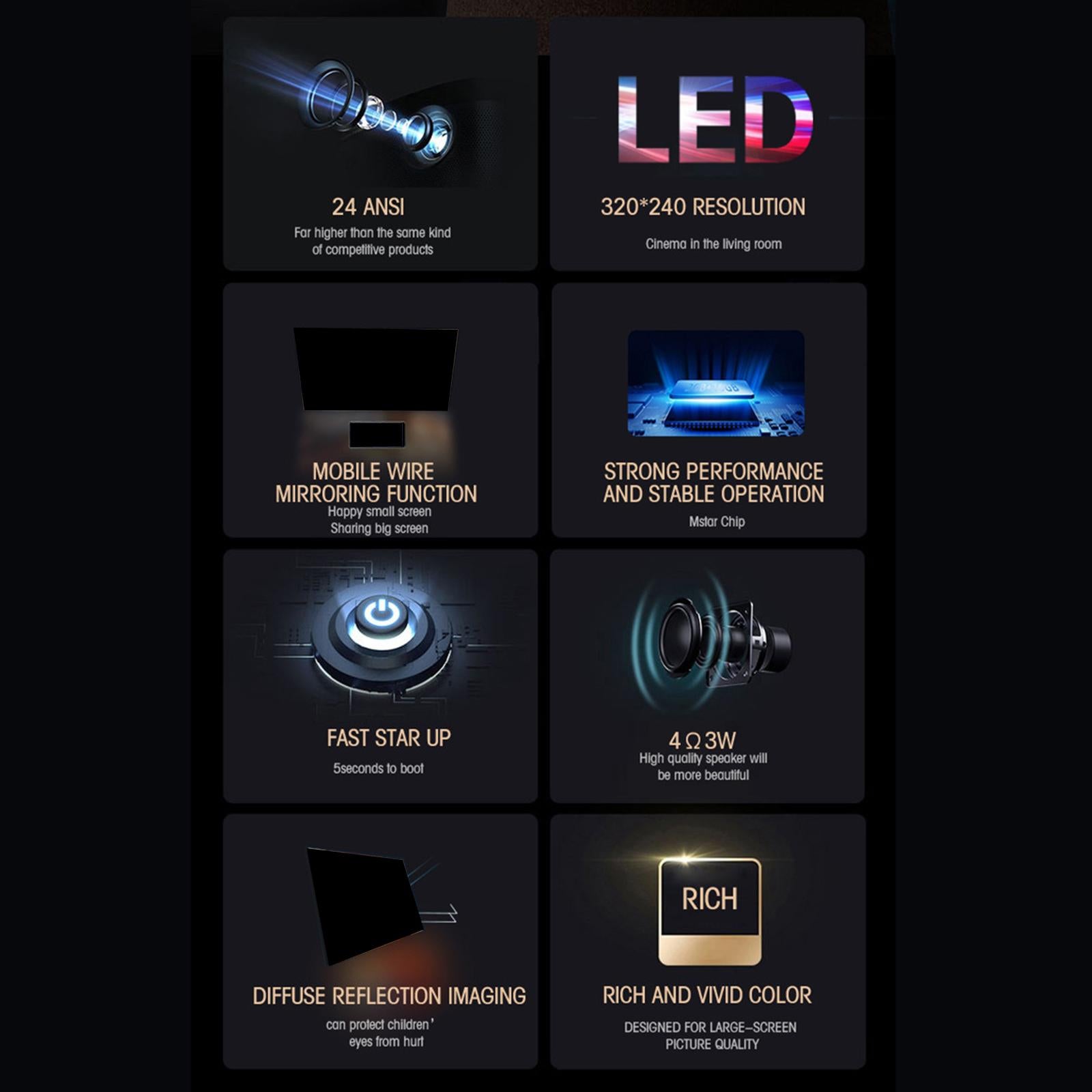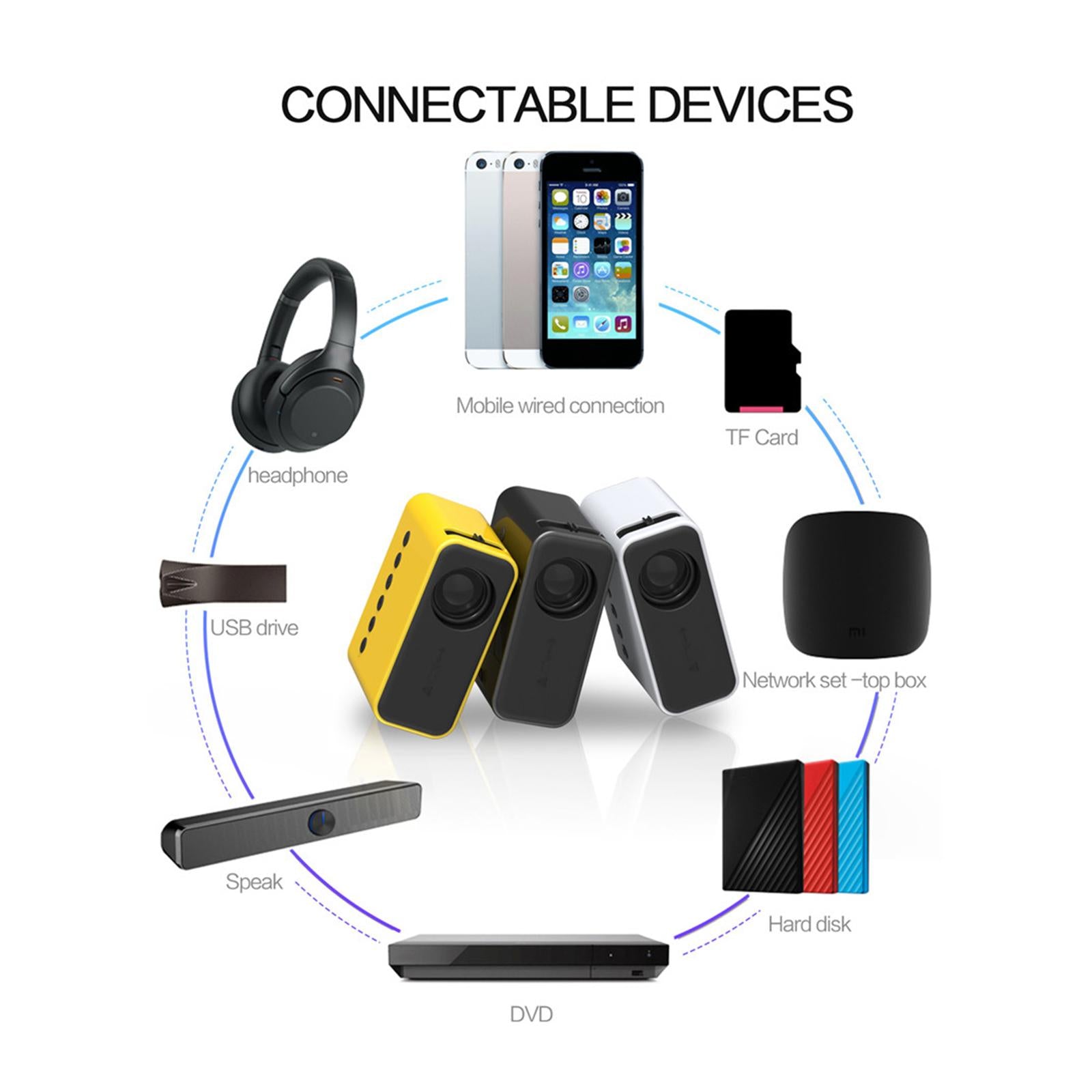 Miniature Wired Projector 1080P for Family Education Home Theaters Black