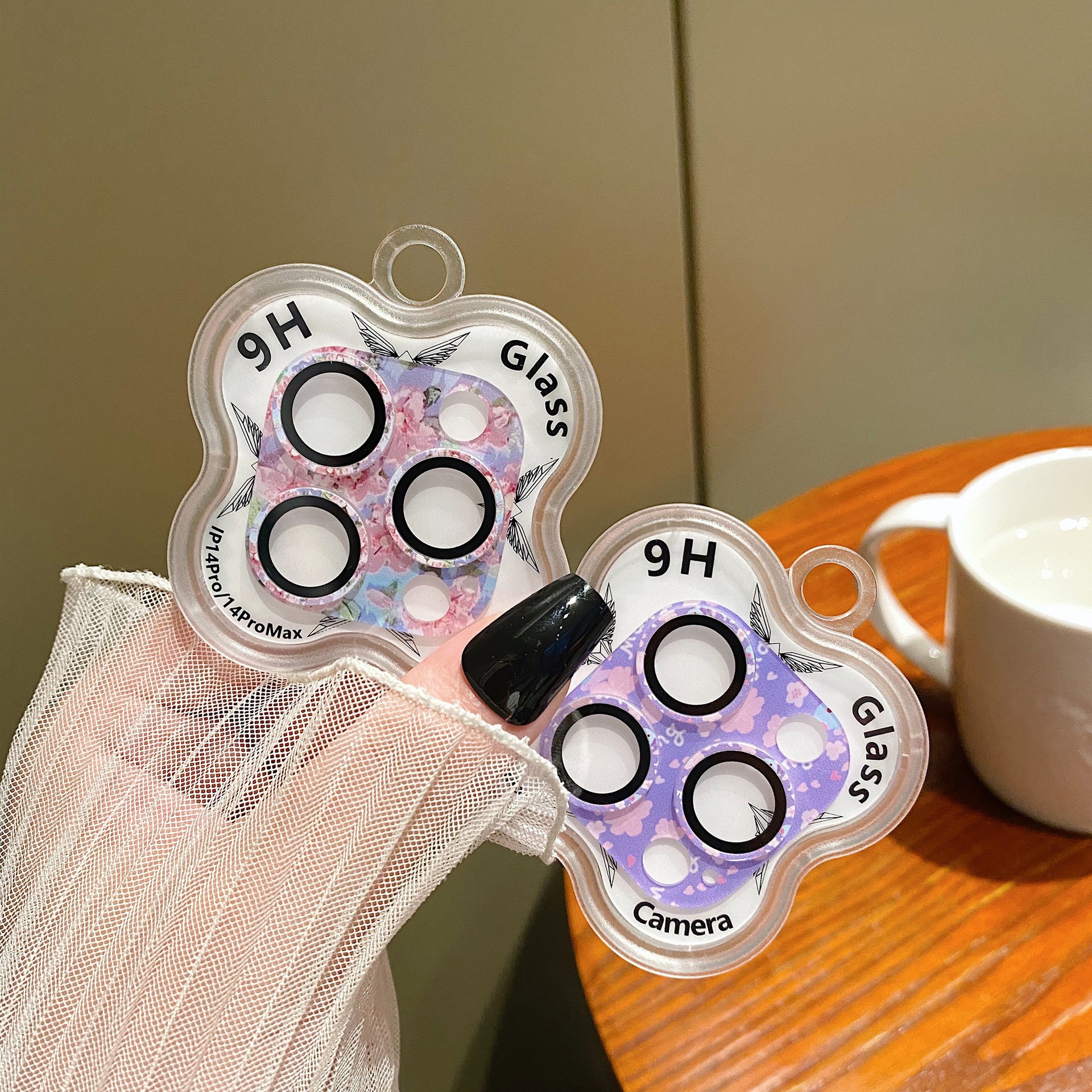 Uniqkart For iPhone 14 Pro / 14 Pro Max Camera Lens Protector 9H Tempered Glass Pattern Lens Film - Style B