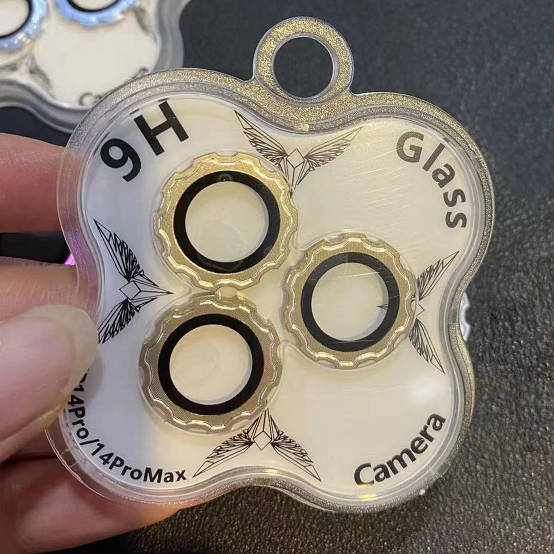 Uniqkart For iPhone 14 Pro / 14 Pro Max Camera Lens Protector Screw Cap Design Tempered Glass Ring Lens Cover Film - Gold