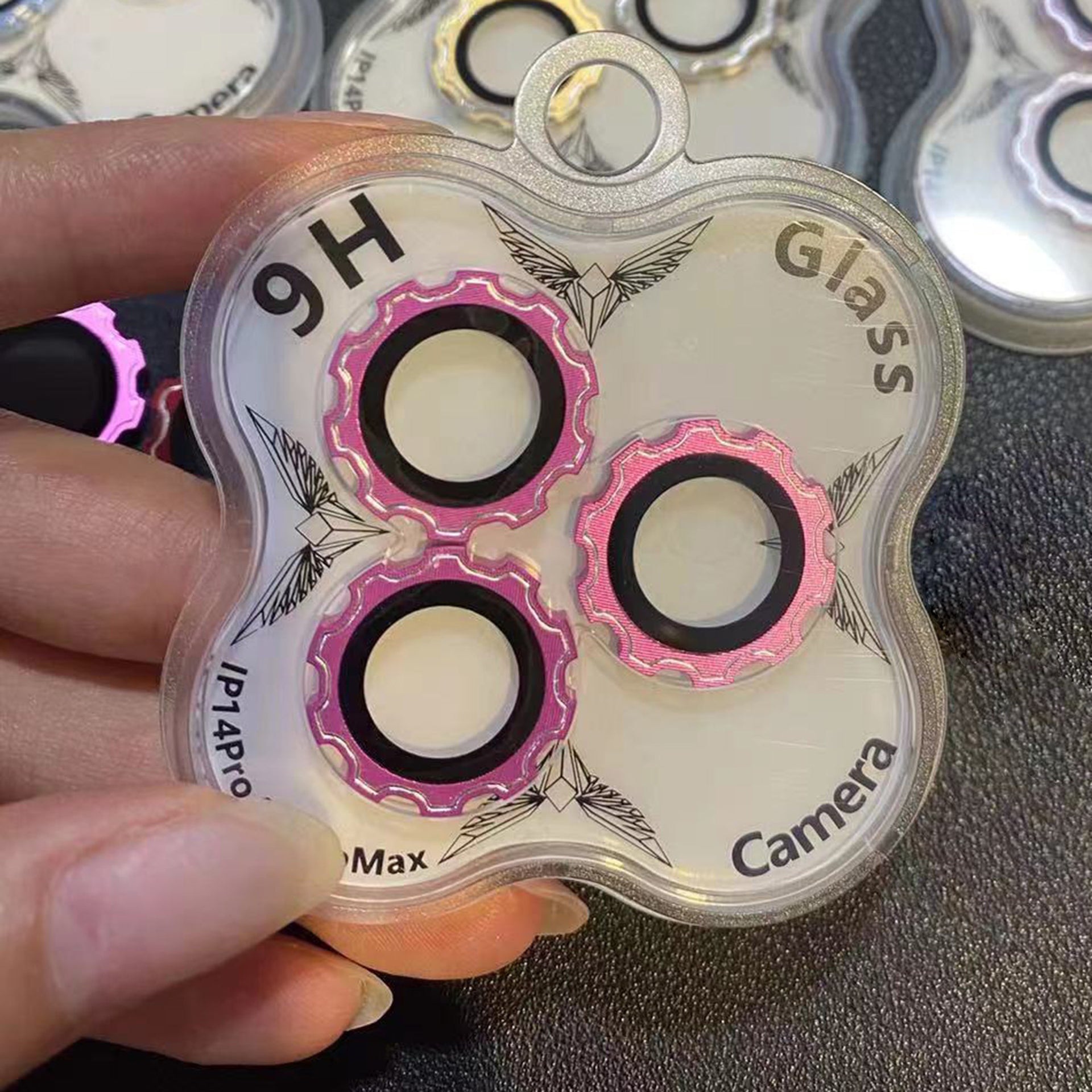 Uniqkart For iPhone 14 Pro / 14 Pro Max Camera Lens Protector Screw Cap Design Tempered Glass Ring Lens Cover Film - Rose