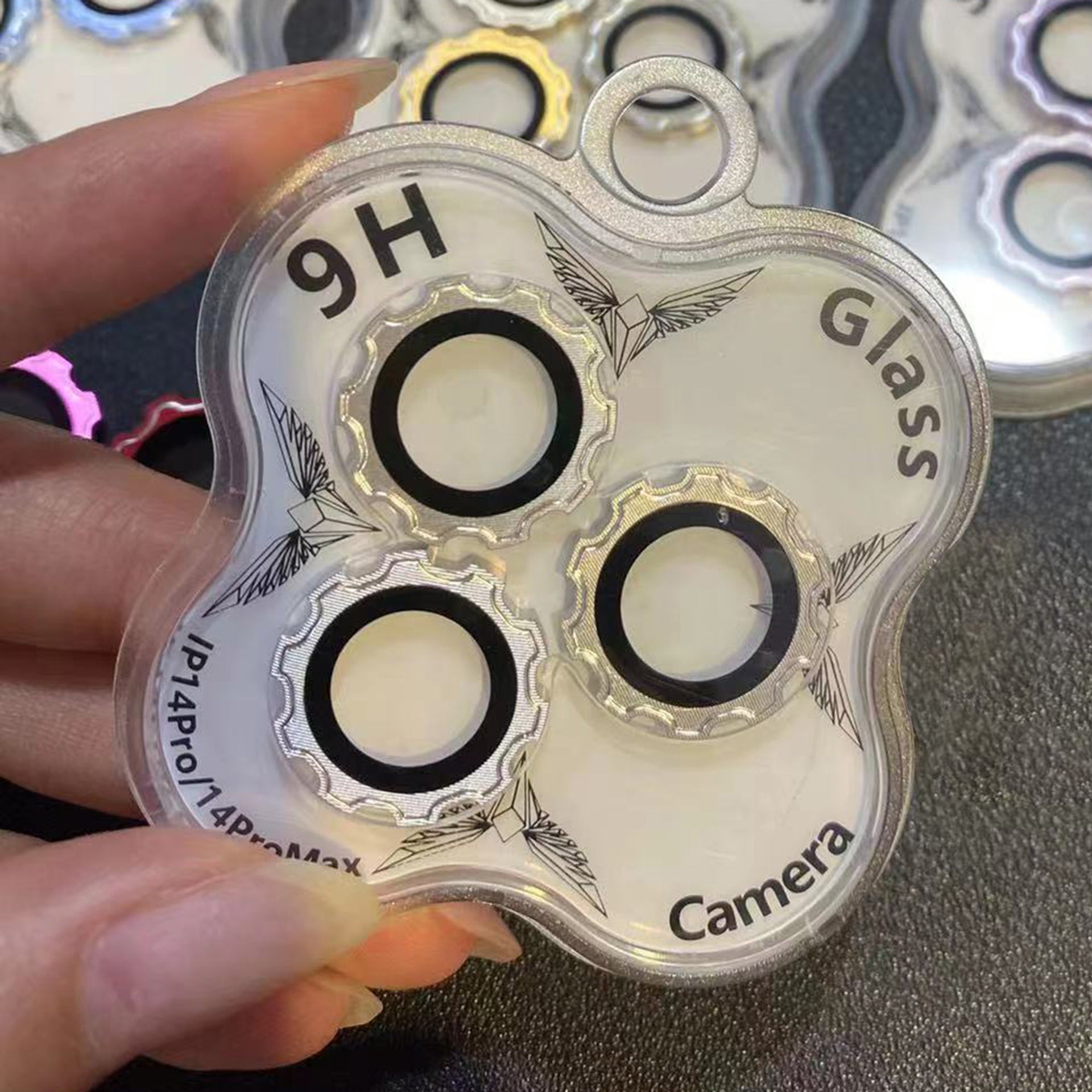 Uniqkart For iPhone 14 Pro / 14 Pro Max Camera Lens Protector Screw Cap Design Tempered Glass Ring Lens Cover Film - Silver