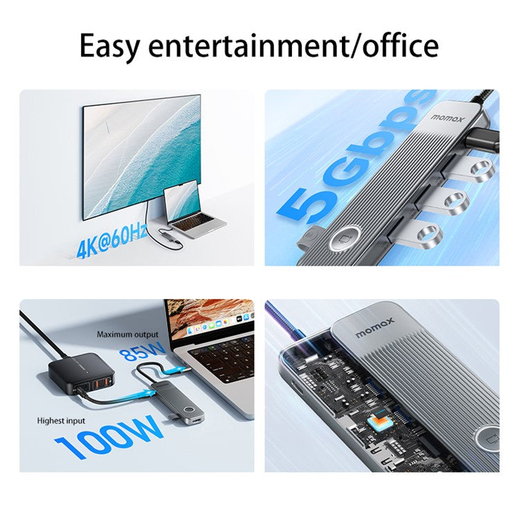 MOMAX ONELINK 7-in-1 Multi-Port Type-C Docking Station Portable PD 100W USB-C Hub Adapter - Dark Grey
