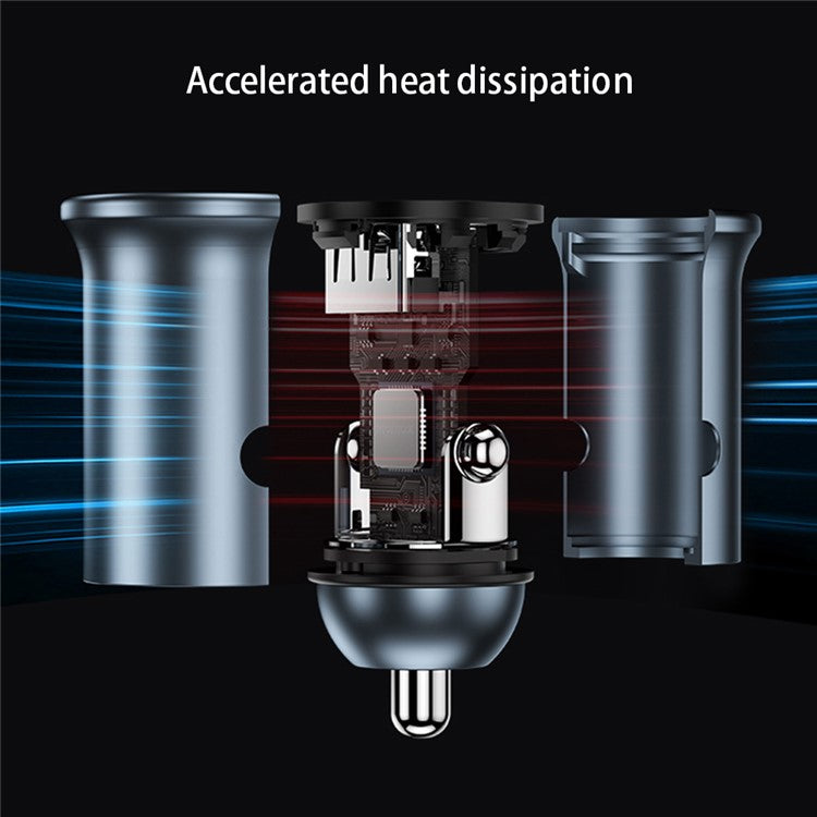 MOMAX PD 30W Type-C+USB Phone Fast Charging Adapter ABS+Aluminum Alloy Car Charger (CE Certified) - Dark Grey