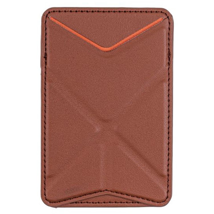 MRC051 Phone Card Holder with Origami Kickstand Adhesive Phone Wallet Pouch Sleeve Stick-on Leather Case - Brown