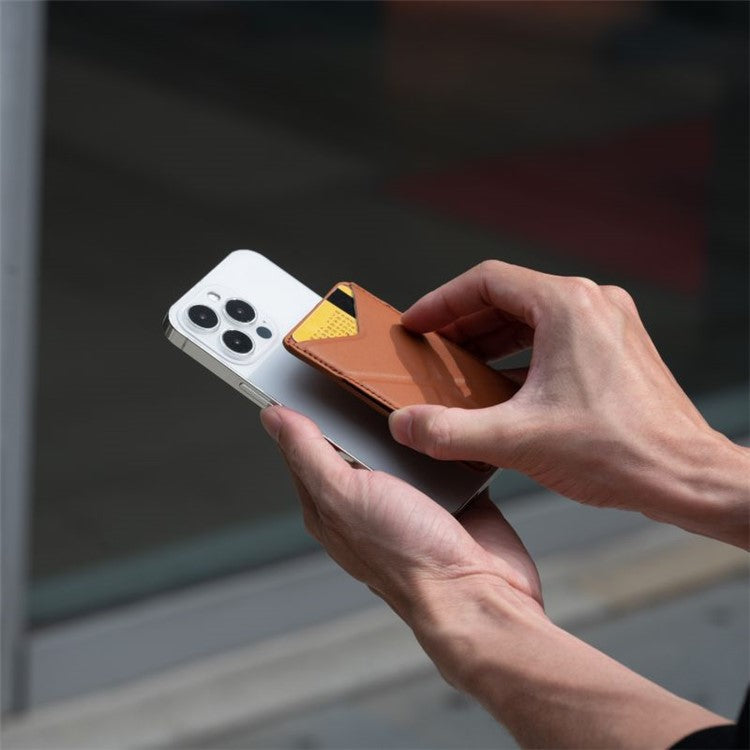 - Compatible with MagSafe, this card holder magnetically attaches to the back of your device for a secure, snap-on fit