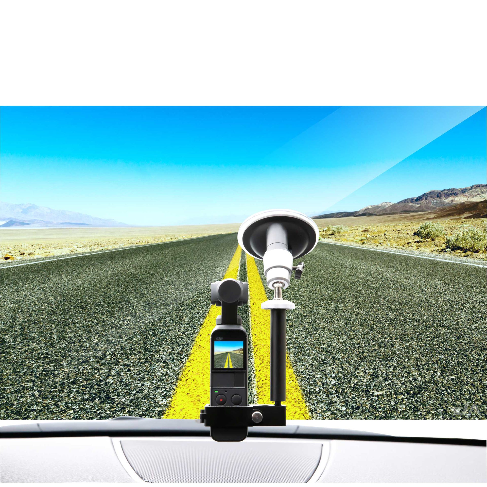 Comes with a suction cup that securely attaches to the window and dashboard