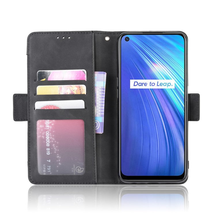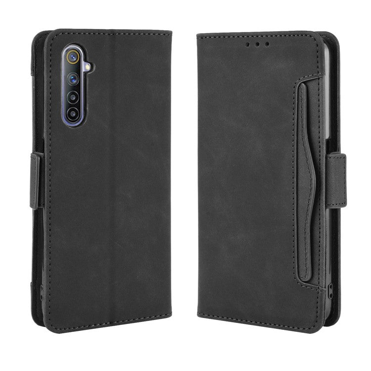 Multiple Card Slots Leather with Wallet Stand Shell for Realme 6 - Black