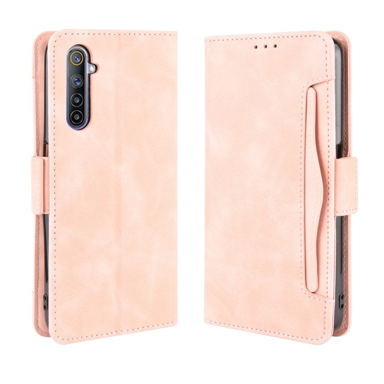 Multiple Card Slots Leather with Wallet Stand Shell for Realme 6 - Pink