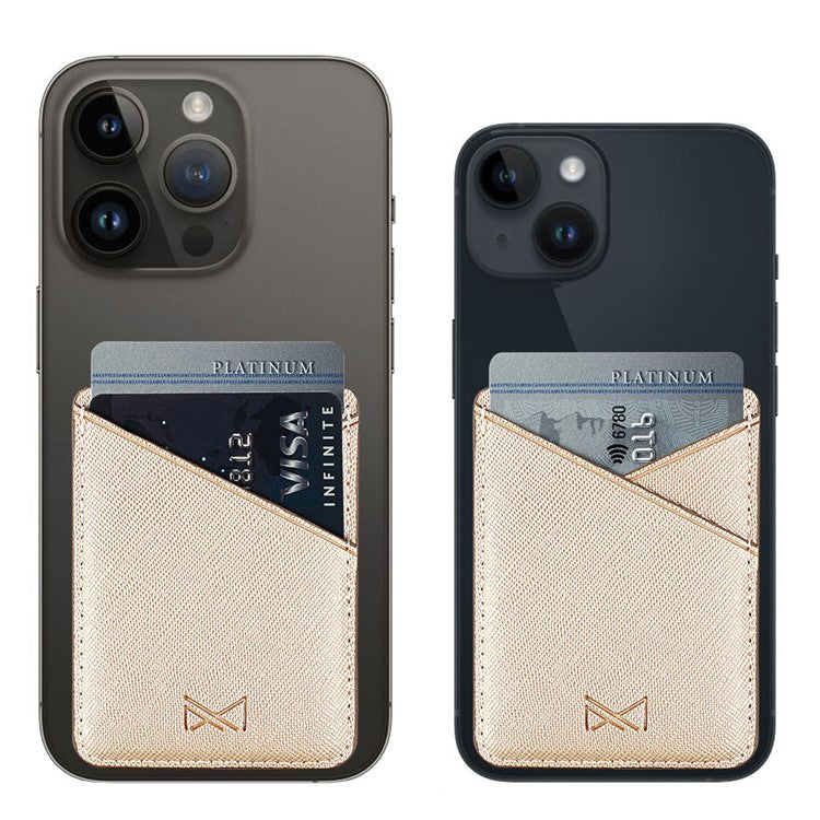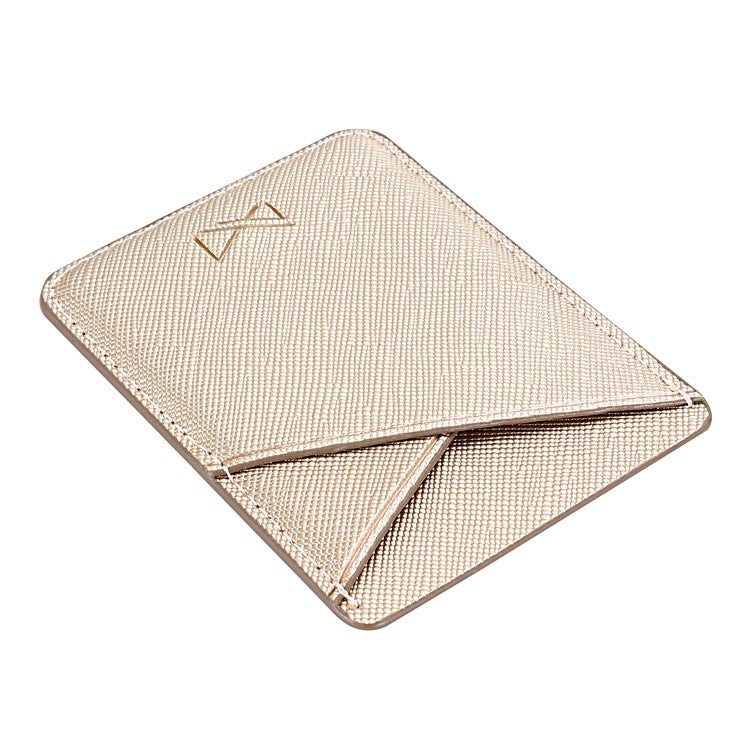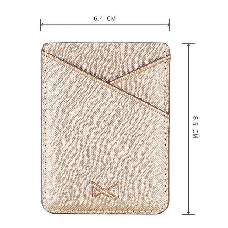 MUXMA MX105 PU Leather Mini Card Pouch Phone Back Adhesive Credit Card Holder ID Card Bag with Cross Texture Design - Gold