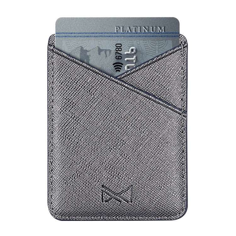 MUXMA MX105 PU Leather Mini Card Pouch Phone Back Adhesive Credit Card Holder ID Card Bag with Cross Texture Design - Tarnish