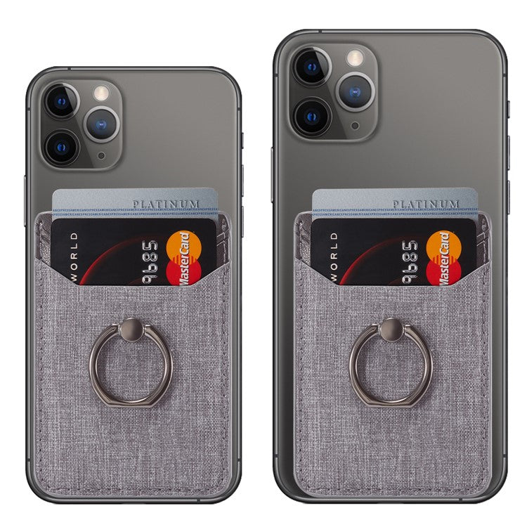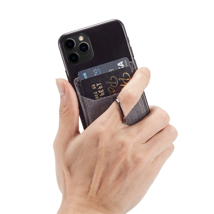 MUXMA MX112 Adhesive Phone Card Holder Canvas Texture Ring Stand RFID Blocking Card Slot - Black