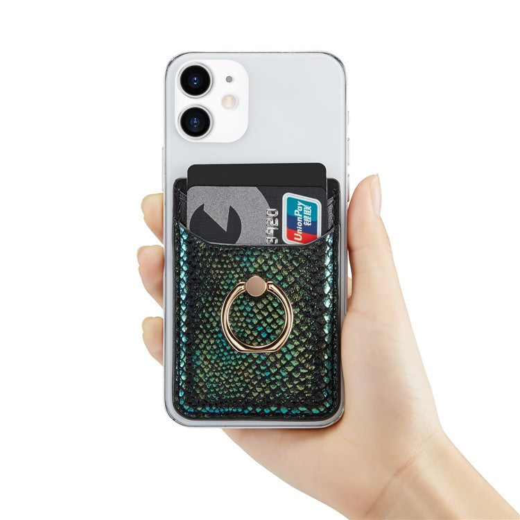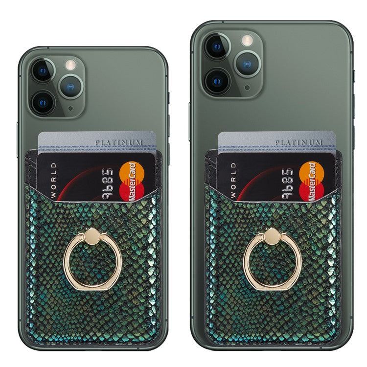 MUXMA MX112 RFID Blocking Phone Card Holder Snake Texture PU Leather Adhesive Credit Card Wallet with Ring Stand - Blackish Green