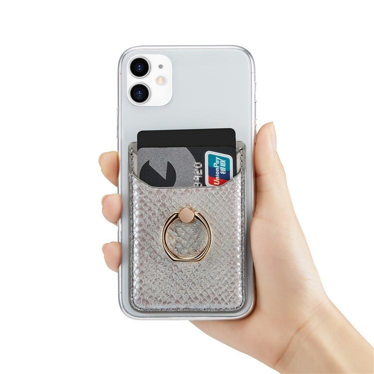 MUXMA MX112 RFID Blocking Phone Card Holder Snake Texture PU Leather Adhesive Credit Card Wallet with Ring Stand - Silver