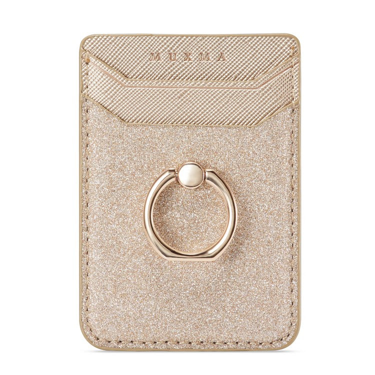 MUXMA MX112 Ring Stand Phone Card Holder Sand Texture PU Leather RFID Blocking Adhesive Card Pocket - Gold