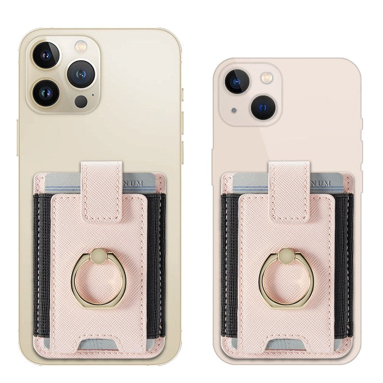 MUXMA MX116-8 Phone Card Holder RFID Blocking Sleeve for Back of Phone, Adhesive Stick-on Credit Card Wallet Pocket with Ring Grip - Pink