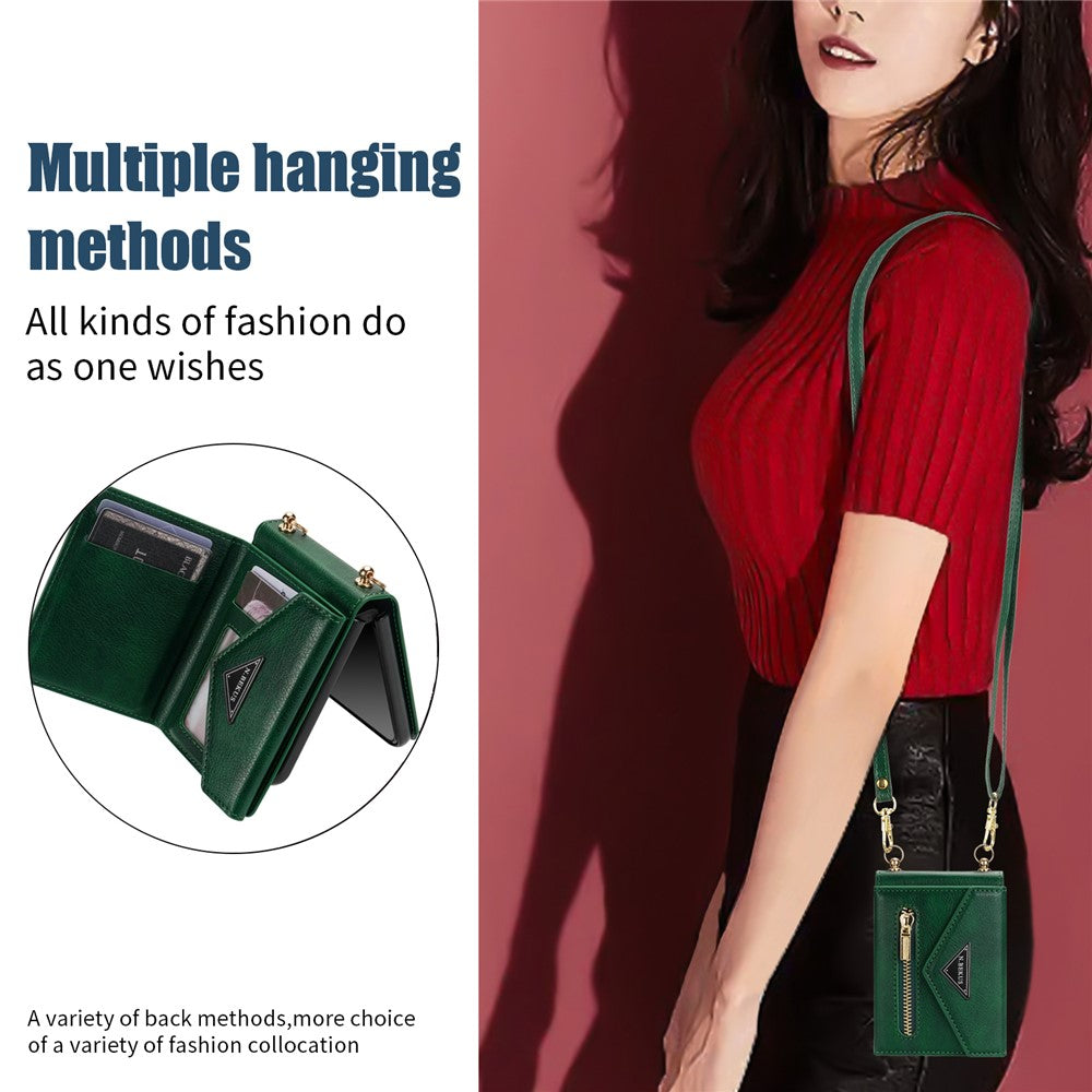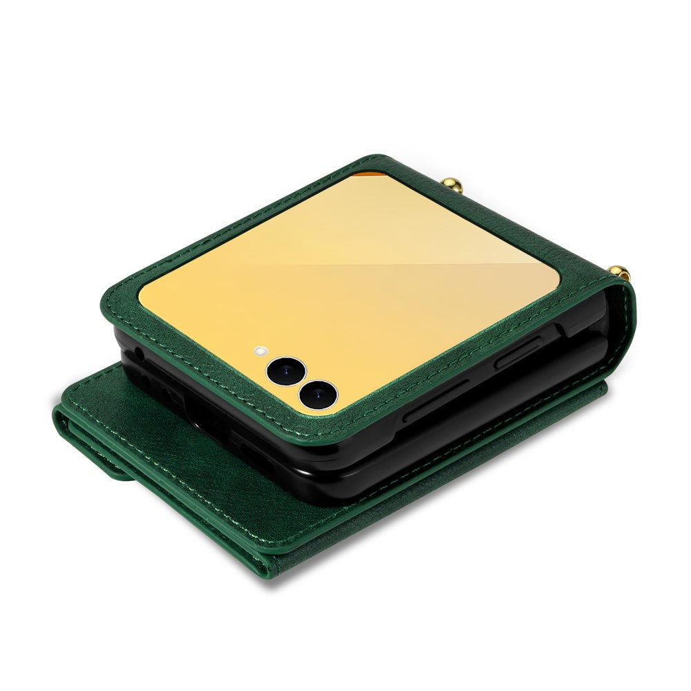 N.BEKUS For Samsung Galaxy Z Flip7 5G Case Zipper Card Holder PU + PC Phone Cover with Shoulder Strap - Green