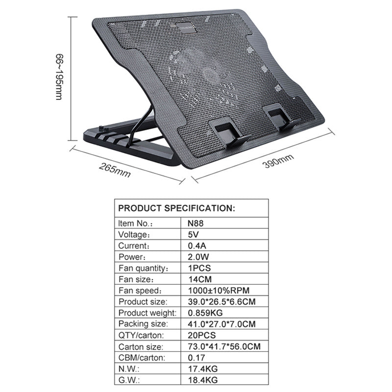 N88 Laptop Cooling Stand Desktop Height Adjustable Notebook Fan Cooler with LED Light