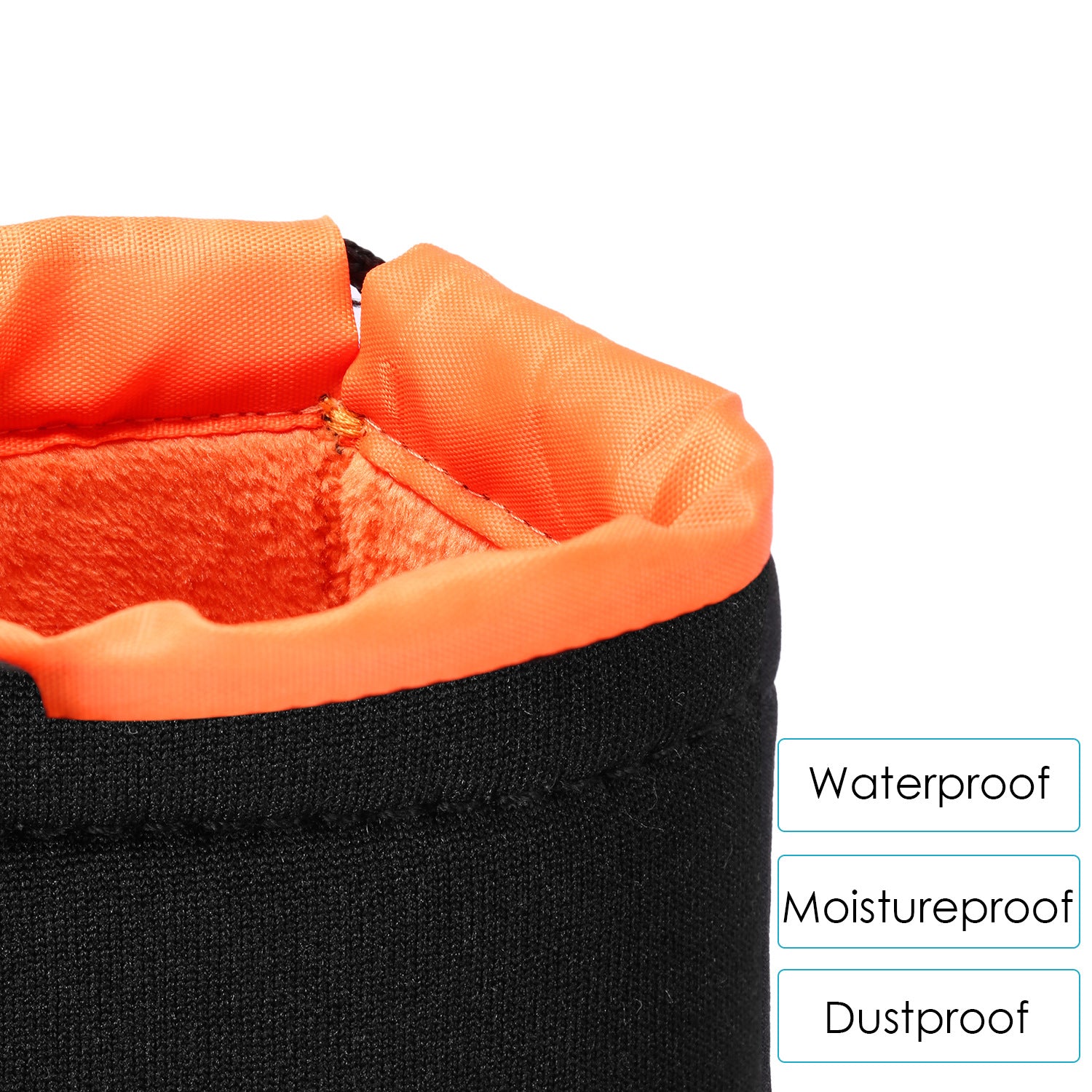- The outer shell is black neoprene material; the interior is orange soft plush material to protect your lenses from small water drops or scratches