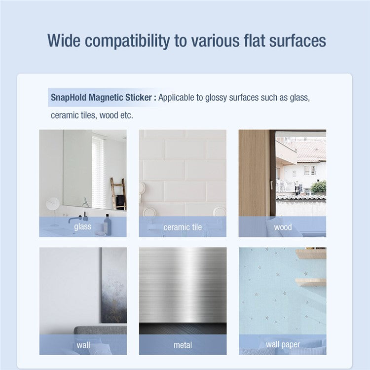 The magnetic ring set included a magnetic snaphold ring and a magnetic snaplink ring. The magnetic snaplink ring allows the phone to have magnetic function for MagSafe. Working together with the magnetic snaphold ring, the mobile phone can be installed on various surfaces such as walls, mirrors, doors and windows, cars, etc., and you can easily watch movies anytime, anywhere, enjoying the convenience. This magnetic ring set is widely compatible with for Apple and Android phones.